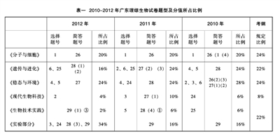 2012年是广东高考新方案下第3年实施理科综合命题,生物试卷命制顺利从过渡走向成熟,在稳中求变、在稳中求新,逐渐形成了自己的特色。高考试题命制围绕和追求的平衡点,也就是高考命题的趋势,本文结合高中新课标和考试大纲,对2010-2012年近3年生物试卷进行对比分析,寻找和探讨试题的命制特点及命题轨迹,以期对2013年高考生物备考有所帮助。