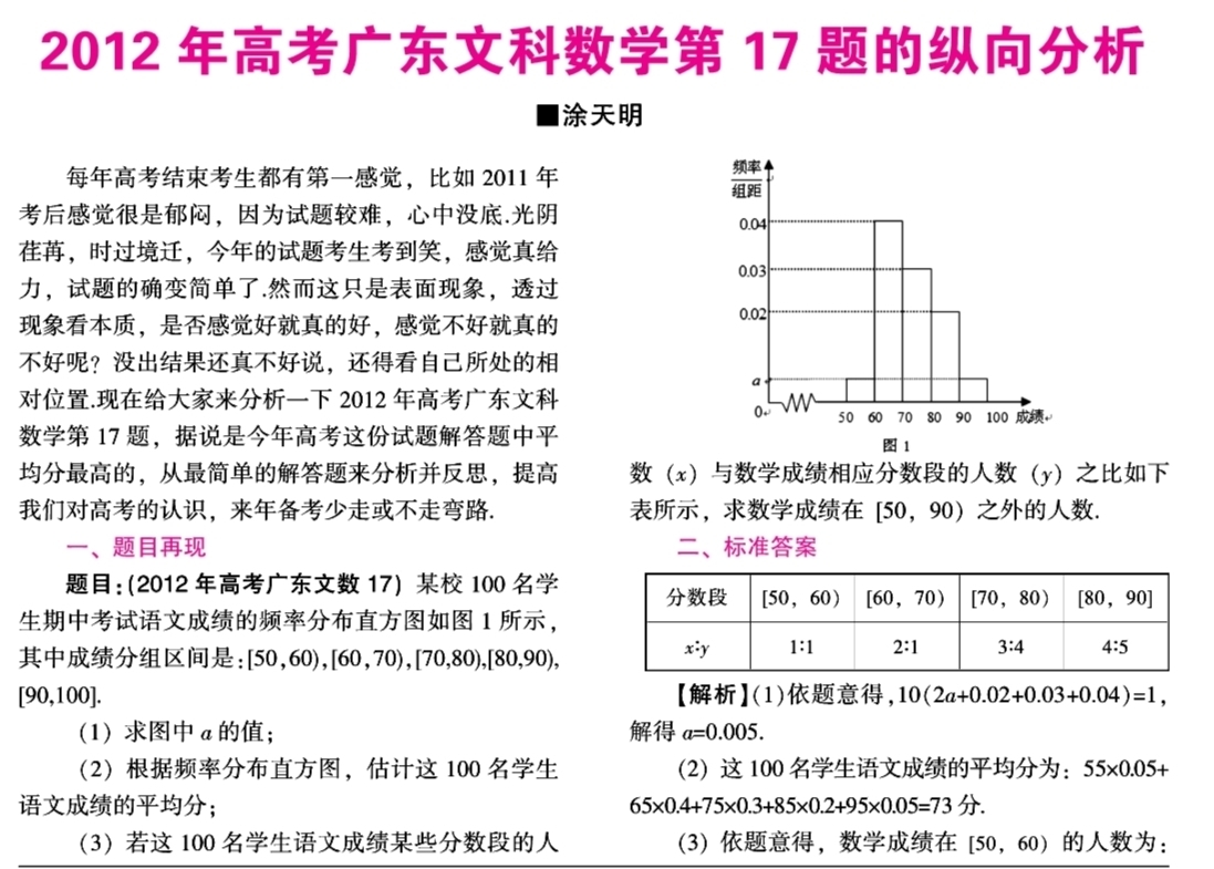第052:点拨·数学有数·2012年高考广东文科数学第17题的纵向分析
