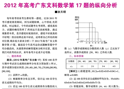 2012年高考广东文科数学第17题的纵向分析
