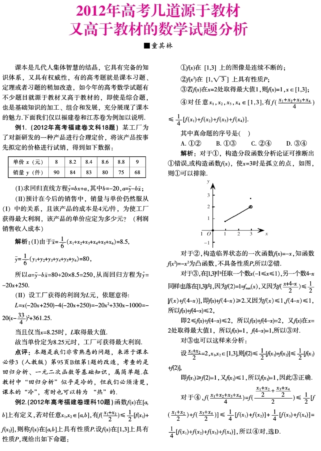 2012年高考几道源于教材 又高于教材的数学试题分析