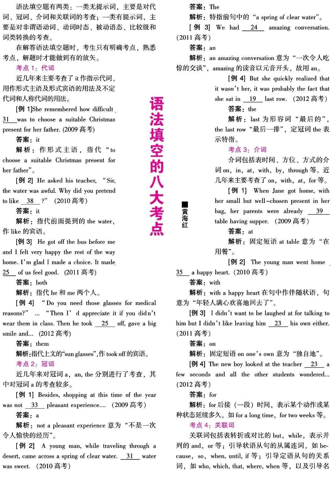 第069页:点拨·英语胜经·语法填空的八大考点