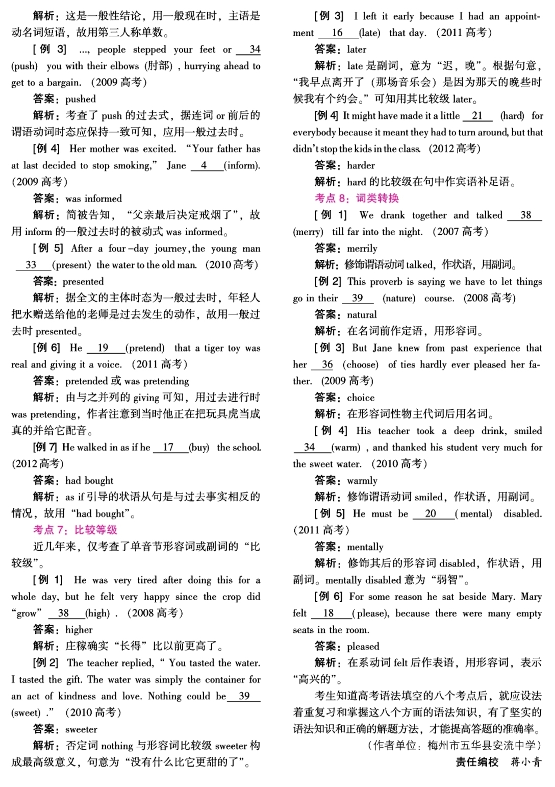 第070页:点拨·英语胜经·语法填空的八大考点