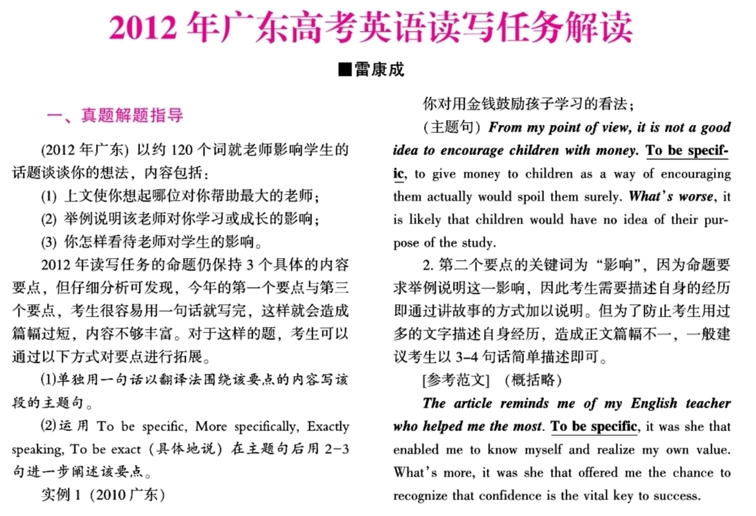 第083:点拨·英语胜经·2012年广东高考英语读写任务解读