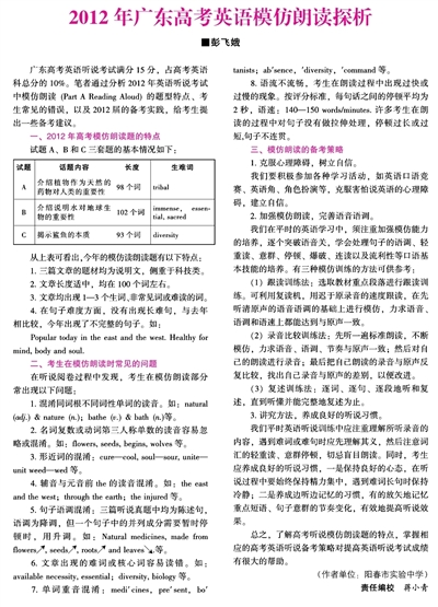 广东教育高中版点拨·英语胜经·2012年广东高考英语模仿朗读探析0882012年广东高考英语模仿朗读探析 2012-07-15 2 2012年07月15日 星期日