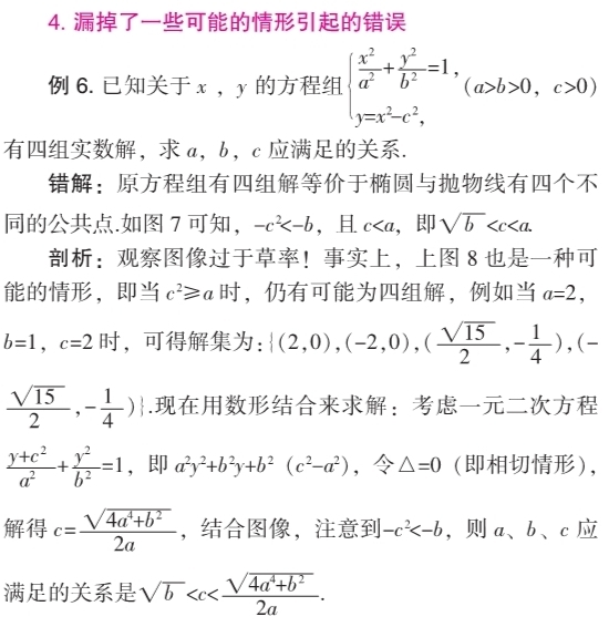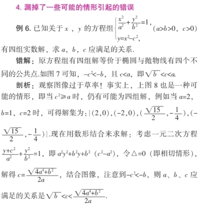 总之,数形结合的确是一个非常好,也非常实用而且重要的思想方法,应用性强.但它又是一把双刃剑,有诱惑也有陷阱.因此,我们在运用时,要注意利用“数”的精确性,注意数形转化的等价性,注意图形的全面性,在直观的同时,辅有严谨的演绎.