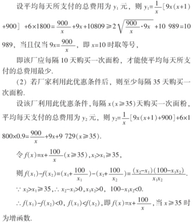 解析:(1)设该厂应每隔x天购买一次面粉,其购买量为6x吨.由题意知,面粉的保管等其他费用为3[6x+6(x-1)+…+6×2+6×1]=9x(x+1).