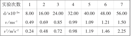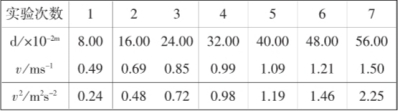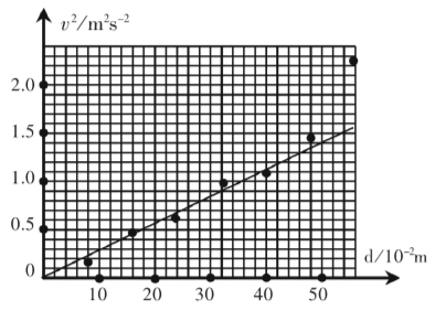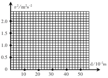 (3)为了探究做功与速度变化的规律,依次得到的实验数据记录如下表所示.请在方格纸内描点作出v2-d图像;