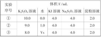 (1)向KI、Na2S2O3与淀粉的混合溶液中加入一定量的K2S2O8溶液,当溶液中的 耗尽后,溶液颜色将由无色变成为蓝色。为确保能观察到蓝色,S2O3-与S2O82-初始的物质的量需满足的关系为:n(S2O32-):n(S2O82-) 。