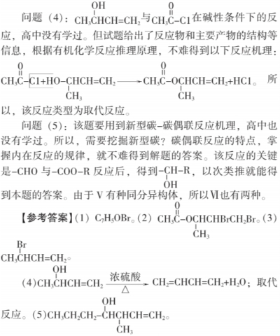 【解题思路】本题的前3个问题及问题(4)的第一空,都属于有机物的常规考查题,包括从结构简式推写分子式,根据反应推写反应物、产物的结构简式,反应方程式的书写等考查。而问题(4)的第二空和问题(5)的解答,就需要挖掘其中未学过的两个化学反应的机理。