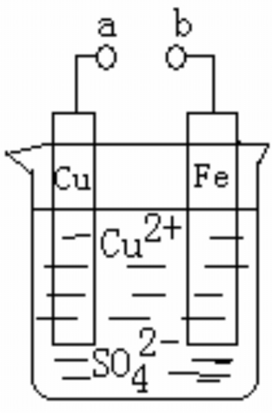 D. a和b分别连接直流电源正、负极,电压足够大时,Cu2+向铜电极移动