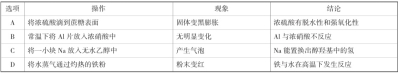 解析:浓硫酸滴到蔗糖表面时,固体变黑是由于硫酸的脱水性将蔗糖中的氢原子与氧原子按2:1脱去水分子生成碳单质,固体膨胀是由于碳单质被浓硫酸氧化生成CO2、SO2气体,A选项正确。常温下Al片放入浓硝酸中无明显变化,是由于铝遇到浓硝酸发生钝化,钝化过程有化学反应,B选项错误。无水乙醇能与钠反应置换出氢气,C选项正确。水蒸气与铁粉在加热时生成黑色的四氧化三铁,不是红色的氧化铁,D选项错误。
