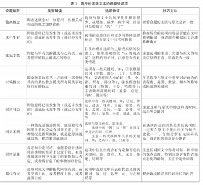 高考论述类文本的设题错误项比较固定,主要有以下8种,详见表1。