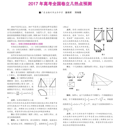 应考方略·2017年高考全国卷立几热点预测