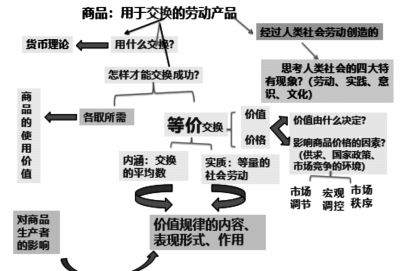基于新课程标准下的高考复习备考策略也需从如下三方面进行调整:第一,重构教材内容,重新进行知识建模。由于全国卷命题都是从理论模块考查学生的综合能力,而不是从零碎的知识片段去考查,因此在复习中首要的就是必须引导学生找到教材知识之间的内在逻辑关系,重新进行知识建模。如商品含义理解的知识建模(详见图1)中以商品的含义