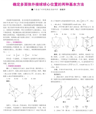 广东教育高中版应考方略·确定多面体外接球球心位置的两种基本方法039确定多面体外接球球心位置的两种基本方法 2018-08-10 2 2018年08月10日 星期五