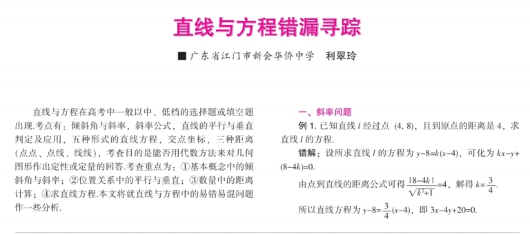 广东教育高中版应考方略·直线与方程错漏寻踪044直线与方程错漏寻踪 2018-08-10 2 2018年08月10日 星期五