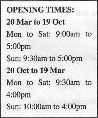 Sunday-Friday(closed on Saturday)11 ∶ 00 am-4 ∶ 00pm, 30 March-2nd November.
