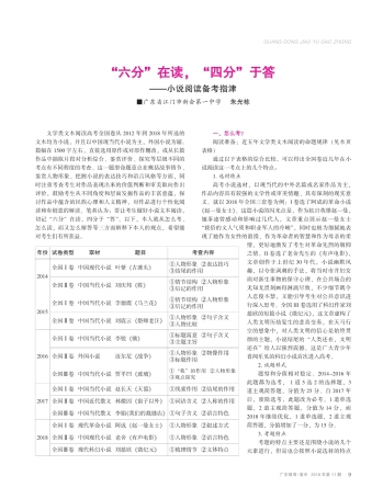 文学类文本阅读高考全国卷从2012年到2018年所选的文本均为小说,并且以中国现当代小说为主,外国小说为辅。篇幅在1500字左右,直接选用原作或对原作删改,或从长篇作品中抽取片段对分析综合、鉴赏评价、探究等层级不同的考点有不同程度的考查。这一题型命题重点在概括故事情节、鉴赏人物形象、把握小说的表达技巧和语言风格等方面,同时注重考查考生对作品表现出来的价值判断和审美取向作出评价,鼓励考生从不同角度和层面发掘作品的丰富意蕴,探讨作品中蕴含的民族心理和人文精神,对作品进行个性化阅读和有创意的解读。笔者认为:要让考生做好小说文本阅读,切记“六分”在读,四分于“答”。以下,本人就从怎么考、怎么读,而又怎么解答等三方面解释下本人的观点,希望能对考生们有所获益。