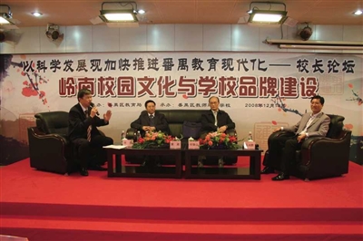 二是番禺教育改革发展创生了教育现代化的理念“孵化器”。这一理念“孵化器”就是番禺教育在推进教育现代化进程中确立的“上品教化”教育理念。如果说,“创强争先”教育政策是番禺教育华丽转型升级的政策“风向标”,那么可以说,“上品教化”教育理念是番禺教育持续转型升级的“智慧芯”。在“上品教化”教育理念的引领下,番禺教育推陈出新,岭南校园文化建设特色纷呈,“研学后教”课堂教学改革接踵而至,“智慧教育”信息工程项目先试先行,充分体现了番禺教育改革发展的创新品质与先行精神。