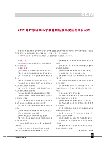 第65页:博览·粤教新声·2012年广东省中小学教育创新成果奖获奖项目公布