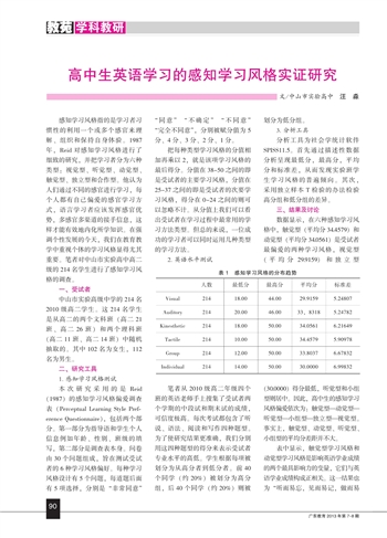 第104页:教苑·学科教研·高中生英语学习的感知学习风格实证研究