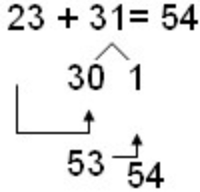 师:也就是说,他们都对加数进行了分拆,像这样的方法,我们叫做拆数法。