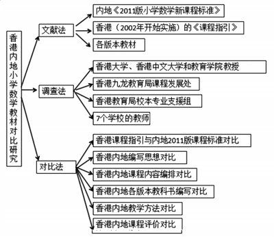 (1)香港课程指引与内地2011版课程标准对比。先从内地《2011版小学数学新课程标准》和香港《课程指引》进行系统纵向、横向对比研究,分析比较香港内地教材开发的课程目标、素材选取、教材组织、教材编写等。