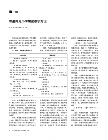 专题·香港与内地小学数学教材对比研究·香港内地小学乘法教学对比