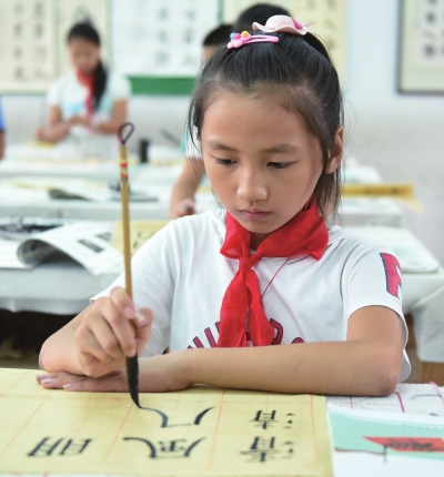“为了把书法教育落到实处,我们市教育局专门成立了艺术教育中心来负责这件事。”李悦双表示,为扎实推进中小学书法教育,普宁市以《普宁市中小学书法教育实施方案》为蓝本,构建了新颖的推进结构和体系。市教育局成立由教育局局长任组长,分管副局长任副组长,秘书股、人事股、教育股、教研室等负责人为成员的普宁市中小学书法教育工作领