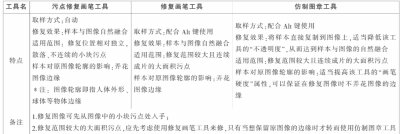 所谓图表对比就是把相近或相似的概念列成表格以加深理解。例如,在PS图像修复这一节的教学中,学生学习各个工具的使用并不难,困难的是当教师把这些工具讲完,给学生一幅被洒落的咖啡弄花了的婚纱照片让他们处理时,因为该图片比教材提供的素材图片复杂一些,修复过程中要涉及多个修复类工具的综合使用,结果很多学生不知从何下手,在应用过程中不知道在什么情况下用哪个工具合适,修复效果不理想。根据这种情况,笔者意识到单一地介绍工具,而不将工具之间的区别、联系和适用范围总结出来,很难达到好的教学效果。所以,教师在讲授这一部分内容时,有必要指导学生将最常用到和最有对比性的污点修复画笔工具、修复画笔工具和仿制图章工具通过如下列表进行对比。