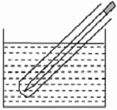 在一个装有清水的烧杯里放入一根里面插有铅笔的试管,如图所示,把烧杯放在明亮的地方,要求学生从不同的角度观察试管中的铅笔,学生发现,在某些角度观察水中的试管时,可看到试管壁好象镀了银一样明亮,但试管中的铅笔却看不见了。当从水中取出试管后,试管又是透明的,又可以看到铅笔。正当学生大惑不解之时,笔者巧妙地问:“笔为何消失了”?这一趣问把学生的求知欲推向高潮,学生迫不及待地期望答案,成为主动的探索者。此时笔者再提出问题:同学们观察到什么现象呢?为什么会出现这种现象?它究竟是一种什么现象?这样自然而然把《全反射现象》这个课题引了出来。