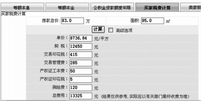 以下是满堂红地产网站买家税费计算的功能,而卖家税费的计算功能还没有实现。