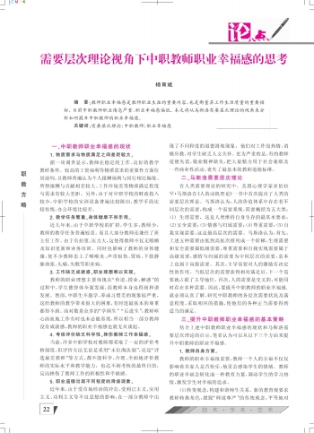 第025页:论点·需要层次理论视角下中职教师职业幸福感的思考