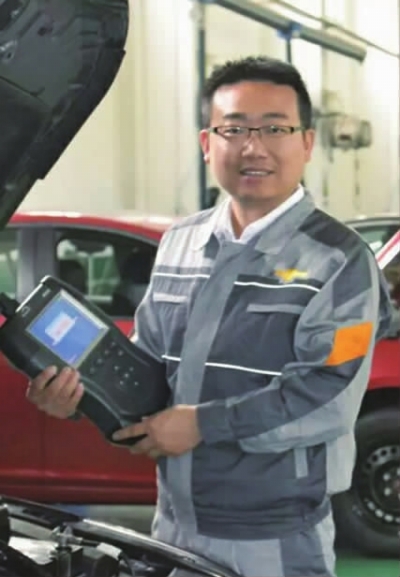 郭建英,佛山市顺德区中等专业学校交通专业部高级讲师,高级技师,将“汽车听诊”快速诊断法引入《汽车故障诊断与排除》课程,增加了学生快速诊断的实战能力,为汽车技术行业培养了大量高技能人才。