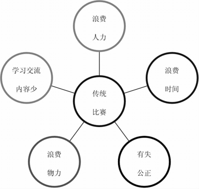 在传统竞赛中,主要存在以上几个方面的缺点,而信息化操作技能大赛可以尽量避免这些缺点,使比赛做到真正的公平公正,互相学习,共同提高。然而,通过图2可以看出,有很多客观条件是可以避免的,或者说可以降到最低,下面我们从主办方与参赛队两个面看一看现有比赛中所存在的问题。