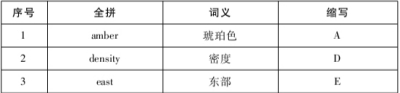 第一种:取单词的开始字母。第一个,前面两个,三个,四个等都有可能。如表3中序号1至序号3取单词的第一个字母,序号4则去单词前两个字母,序号5取单词的前三个字母,序号6去单词的前四个字母。
