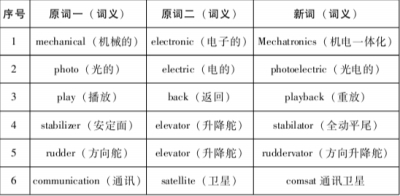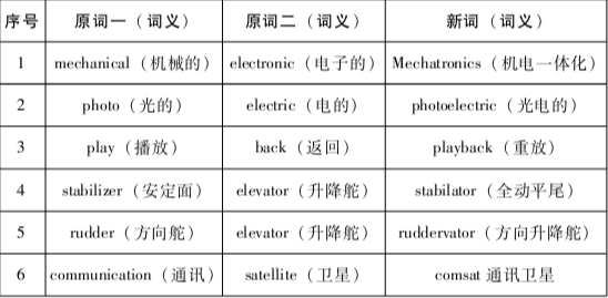 混合法又叫简化用词法,即通过将两个现有单词进行剪裁,摘取或者舍去其首、尾部分,再组合而产生新词的一种组词用法。详例如表6:
