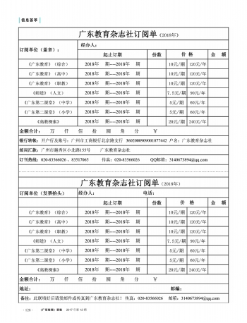 第130页:信息荟萃·广东教育杂志社订阅单(2018年)