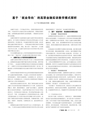 广东教育职教版 高教专论·基于“就业导向”的高职金融实训教学模式探析 021 2017-12-051 2017年12月05日 星期二