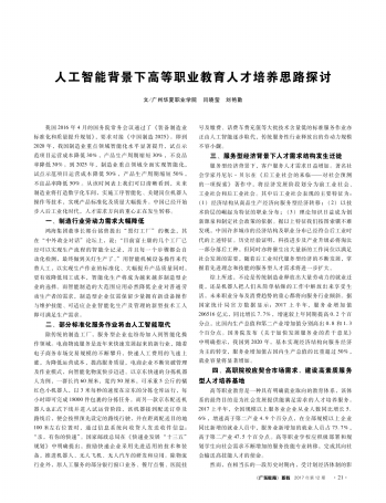 广东教育职教版 高教专论·人工智能背景下高等职业教育人才培养思路探讨 023 2017-12-051 2017年12月05日 星期二