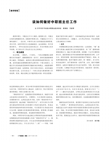 广东教育职教版 教学管理·谈如何做好中职班主任工作 068 2017-12-051 2017年12月05日 星期二