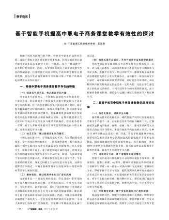 广东教育职教版 教学教法·基于智能手机提高中职电子商务课堂教学有效性的探讨 088 2017-12-051 2017年12月05日 星期二
