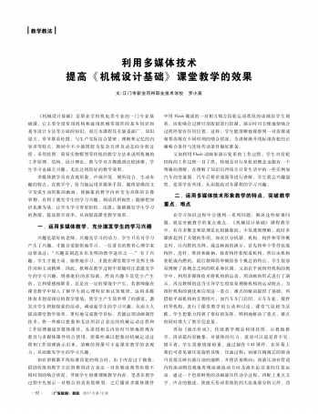 广东教育职教版 教学教法·利用多媒体技术提高《机械设计基础》课堂教学的效果 094 2017-12-051 2017年12月05日 星期二