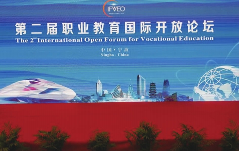 本次论坛是宁波市教育局与中国教育科学研究院战略合作,共同打造国家现代职业教育开放示范区,致力将宁波打造成区域特色鲜明、体现国家与地方需要、达到国内一流世界水准的现代职业教育高地的重要举措。来自英国、斯里兰卡、贝宁、叙利亚马来西亚等多个国家和地区的职业教育办学者,国内各省市中高职教育管理者,企业行业专家以及媒体代表140余人参加了论坛。中国教科院副院长曾天山、教育部职成司综合处副处长董振华、宁波市人民政府副秘书长王建云出席会议并致辞。