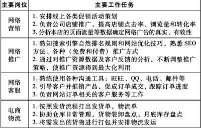 结合国家职业标准、行业规范和社会相关企业用人需求规格要求,对电子商务专业岗位群实行准确定位、详细分析,总结了《网店运营》岗位的主要工作任务,如表1所示: