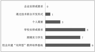 如图3所示,教师下企业方式是多种多样的,是自身需求还是学校安排,是跟随实习学生还是企业要求教师配合下企业,是到指定的校企共建“双师型”教师培养培训基地还是随意找一间企业把教师送过去等,不同方式效果会截然不同。如果方式不当,不仅会影响教师下企业锻炼的积极性,还会影响在企业实践的有效性。如果教师是主动参与,带着问题、任务项目到校企共建“双师型”教师培养培训基地(企业)实践,将会收到事半功倍的效果。