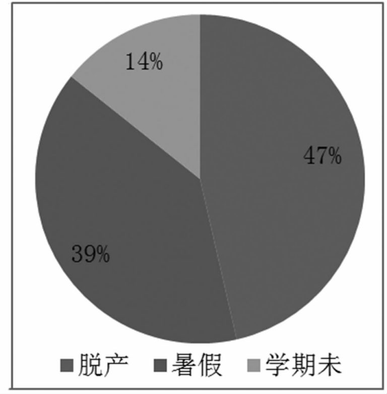教师下企业实践,必须在保证校内正常教学的前提下进行,如果一窝蜂在同一时间内大批量教师下企业,对日常的教学冲击太大,得不偿失。对学校来说教师选择假期是最好时段,其次是学期末,对教学影响不大,但是对教师本人来说,选择平时脱产的也不少,如图4所示,占比47%,时间点的选择除与教师本身有关外,很大程度还与学校配套的激励机制有关,这值得大家去研究和探讨。