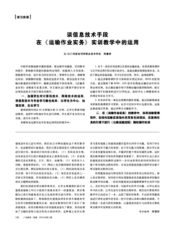 第112页:实习实训·谈信息技术手段在《运输作业实务》实训教学中的运用