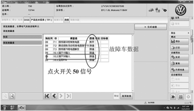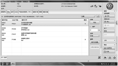 3.用大众专用电脑VAS6150C进行故障检测,发现发动机控制单元有故障存储(见图6)。