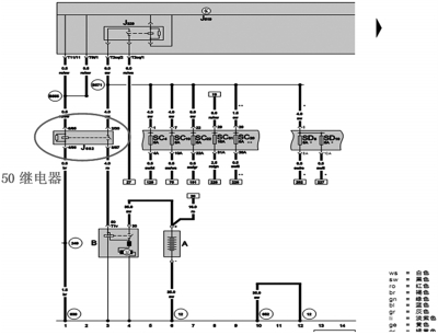 2.由起动机控制数据流(图7)得知,点火开关50信号数据已正常传入到中央电器控制单元J519中,点火开关50信号正常。